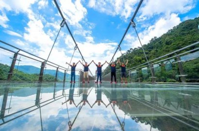 昨天上午, 在懸空跨度72米、直徑16.8米的懸空玻璃平臺上,來自世界紀(jì)錄協(xié)會(World Record Association)的美國認證官邁克·溫特森和中方認證官張健宣布,清遠古龍峽景區(qū)的懸空玻璃平臺、玻璃吊橋、玻璃觀光組合、叢林飛躍四個項目,挑戰(zhàn)世界紀(jì)錄成功。